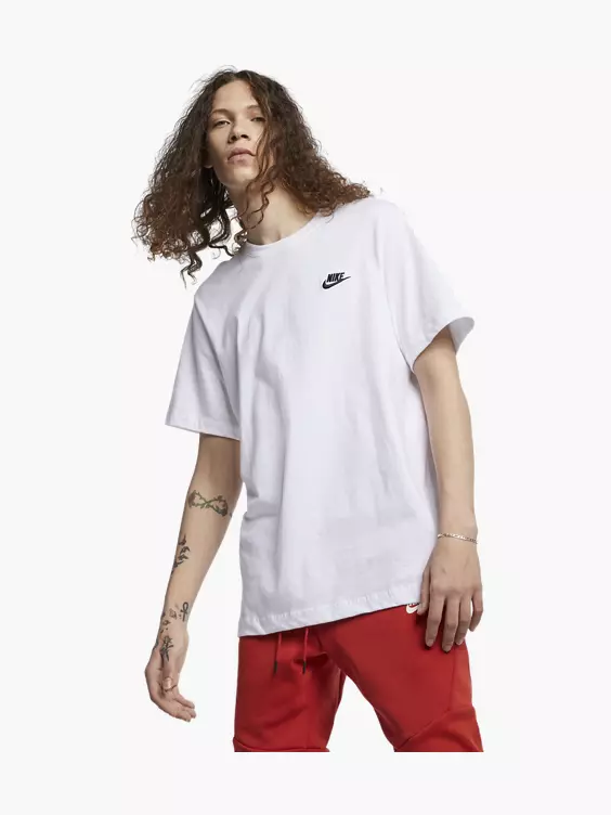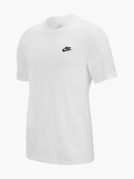 Een goede basis T-shirt mag niet ontbreken aan jouw kledingkast. Dit witte model van Nike is gemaakt van katoen en heeft een zwart logo aan de voorzijde.